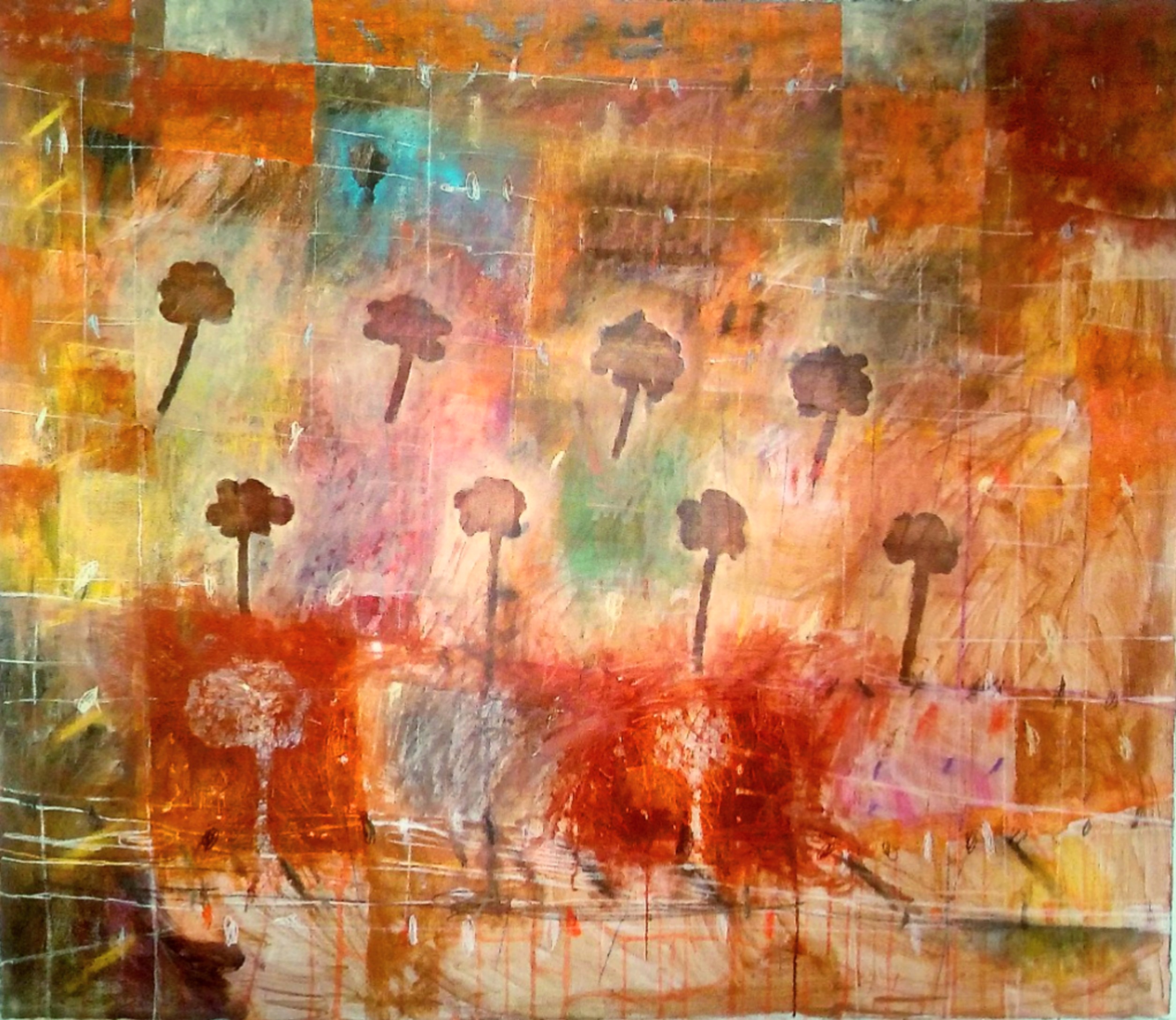 “En mi caso, trabajo con la naturaleza; el paisaje natural y urbano son mis referentes, de allí la imagen de casas, árboles y nubes que plasmo en la obra”.